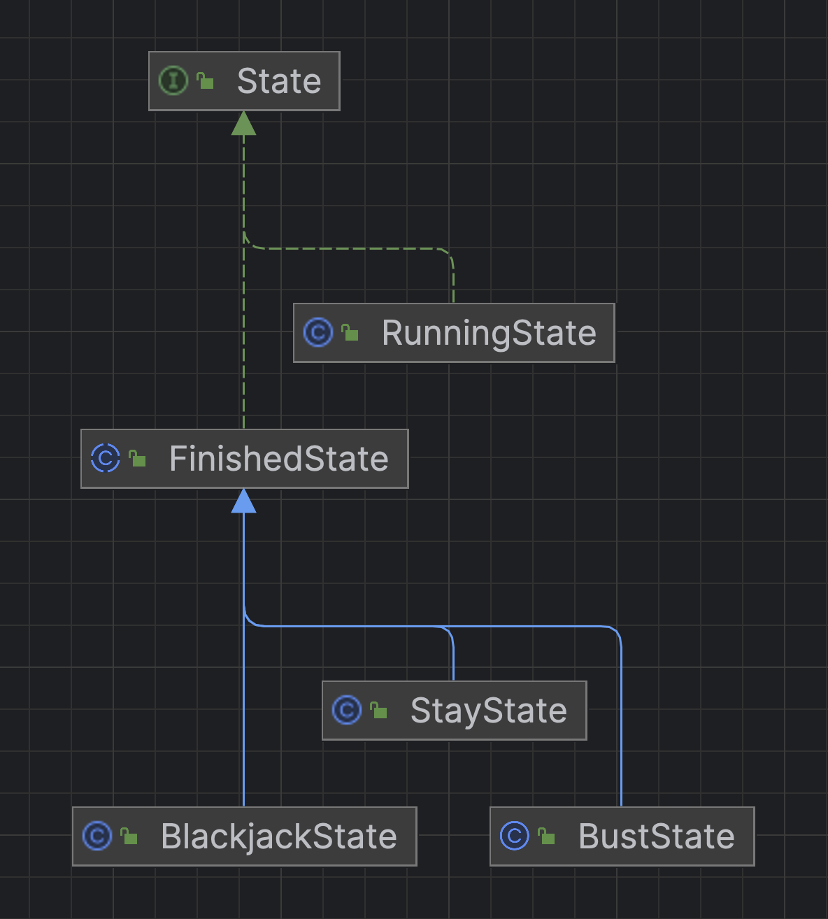 이 과정에서 '블랙잭에서 상태 패턴을 적용하는 이점이 큰가?' 라는 의구심이 들어 결국 적용하지는 않았다. (내가 제대로 적용하지 못한 부분도 분명 있을 것이라 생각한다)